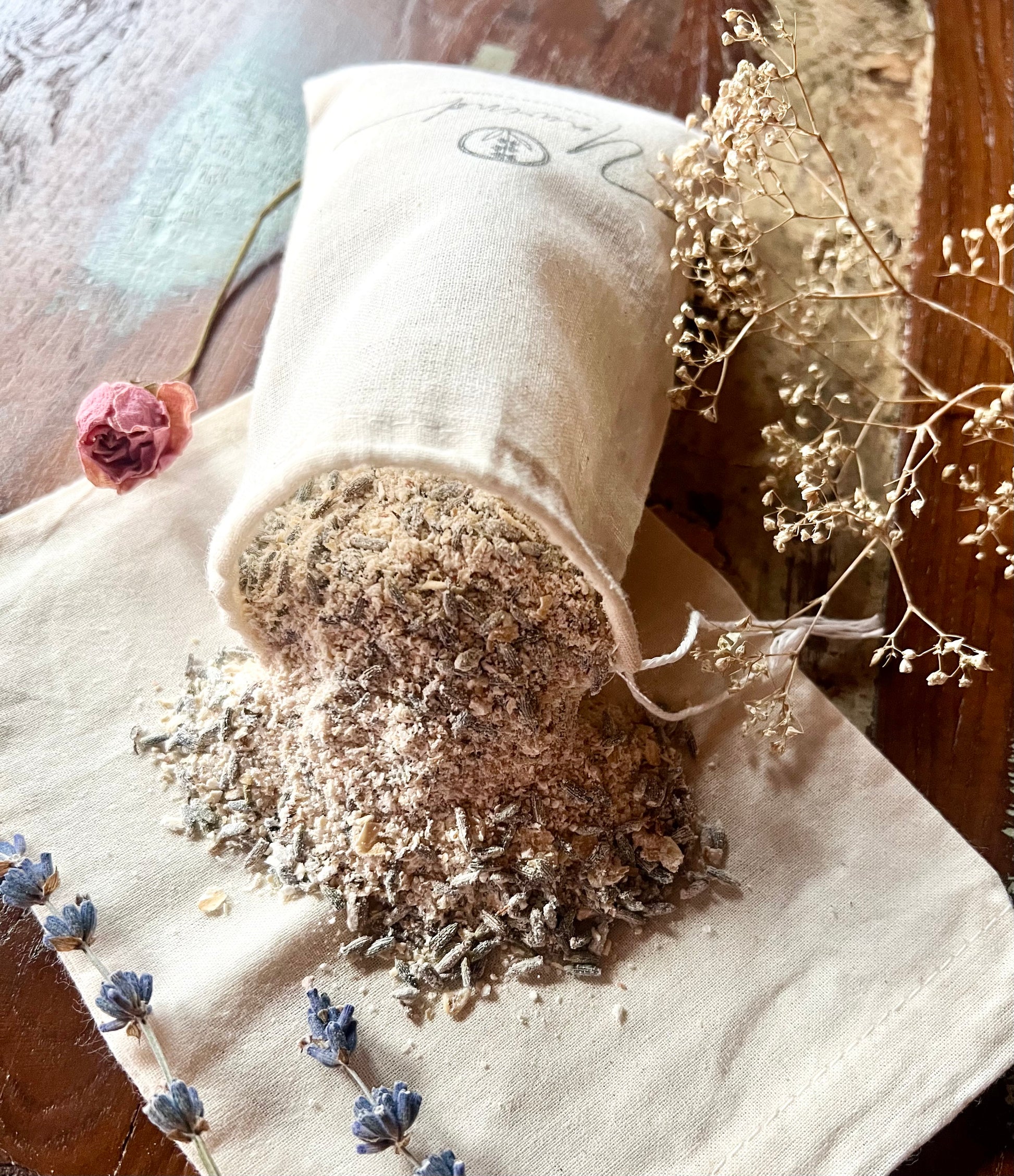 Ingredients: Avena Sativa (colloidal oats), Organic Lavender, Himalayan Pink Salt, Lavender Essential Oil.